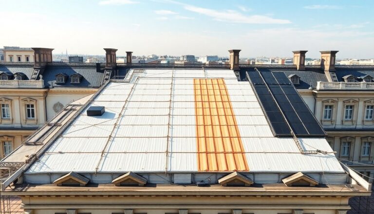La sustitución completa de la cubierta ha sido uno de los trabajos más delicados: se han colocado planchas de plomo fabricadas con técnicas tradicionales para garantizar la compatibilidad con los materiales originales. La intervención también preserva elementos singulares como chimeneas de granito y lucernarios, manteniendo la apariencia original. Estas decisiones materiales buscan un equilibrio entre conservación —como la preservación de técnicas históricas— y la incorporación de soluciones que mejoran la eficacia energética.